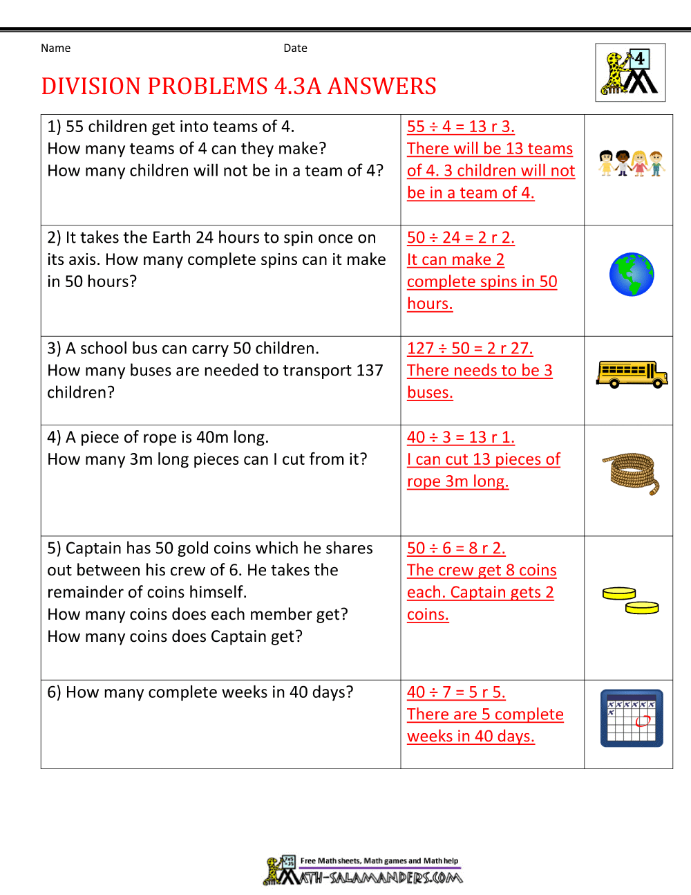 Division Grade 4 Worksheetsr