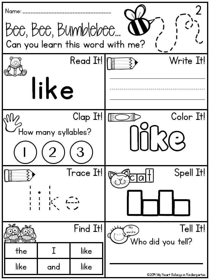 Kindergarten Sight Words U To W Worksheets