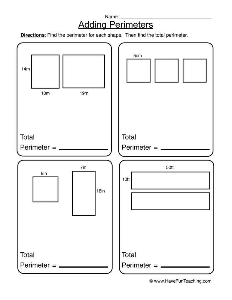 Adding Perimeters Worksheets