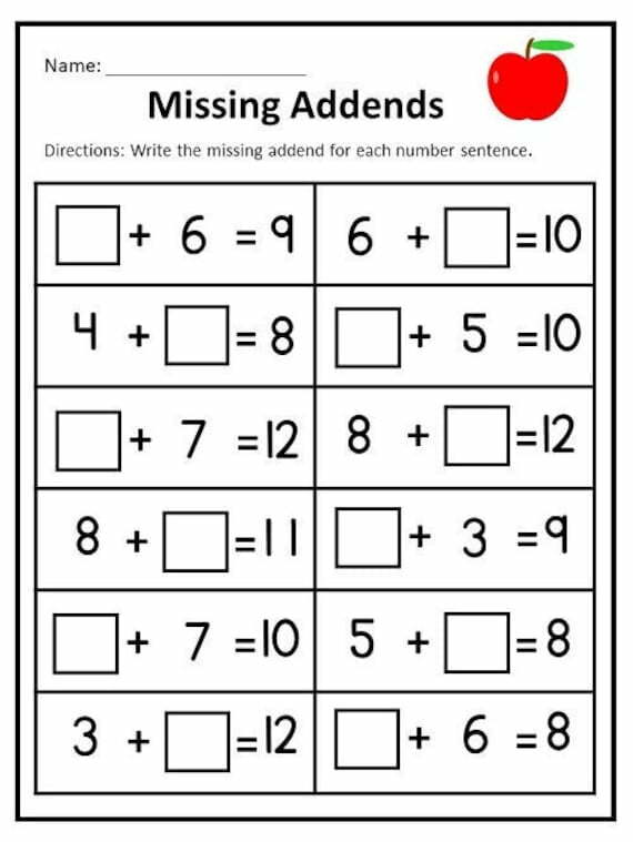 Missing Addend First Grade Worksheetsr