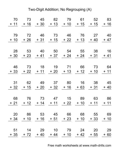 Double Digit Addition No Regrouping Worksheets