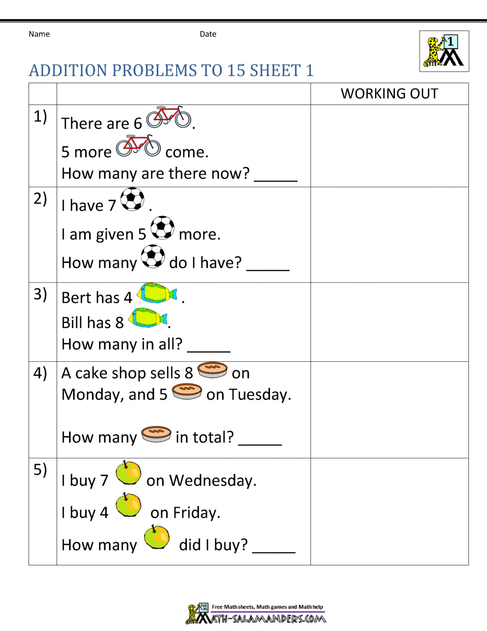 Addition Word Problems 1st Grade Worksheets