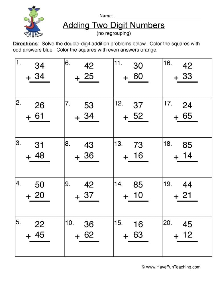 Adding 2 Digit Numbers Without Regrouping Worksheets