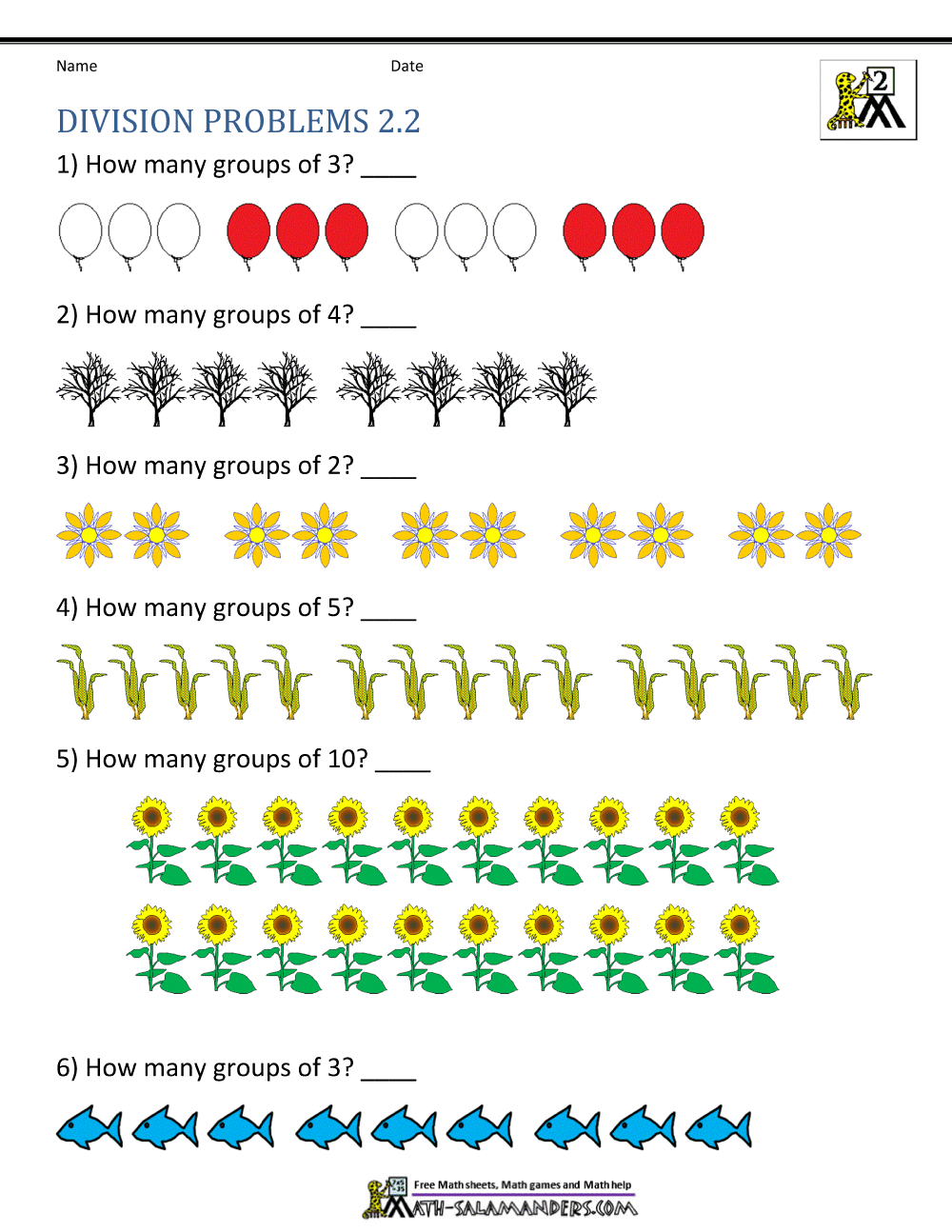 Division For Grade 2 Worksheets