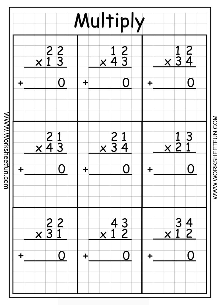 2 Digit By 2 Digit Multiplication With Grids Worksheets