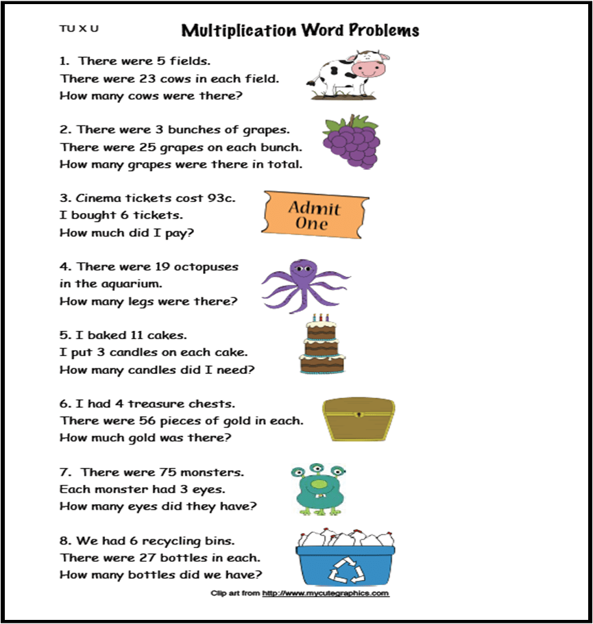 2 Digit By 1 Digit Multiplication Word Problems Worksheets
