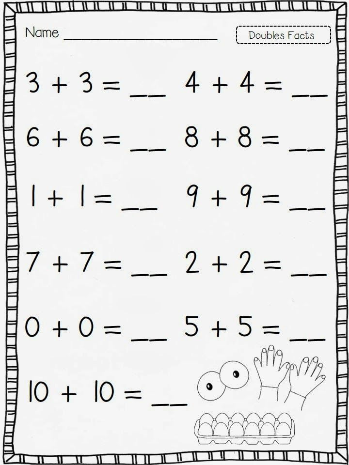 Doubles Fact Math 1st Grade Worksheets