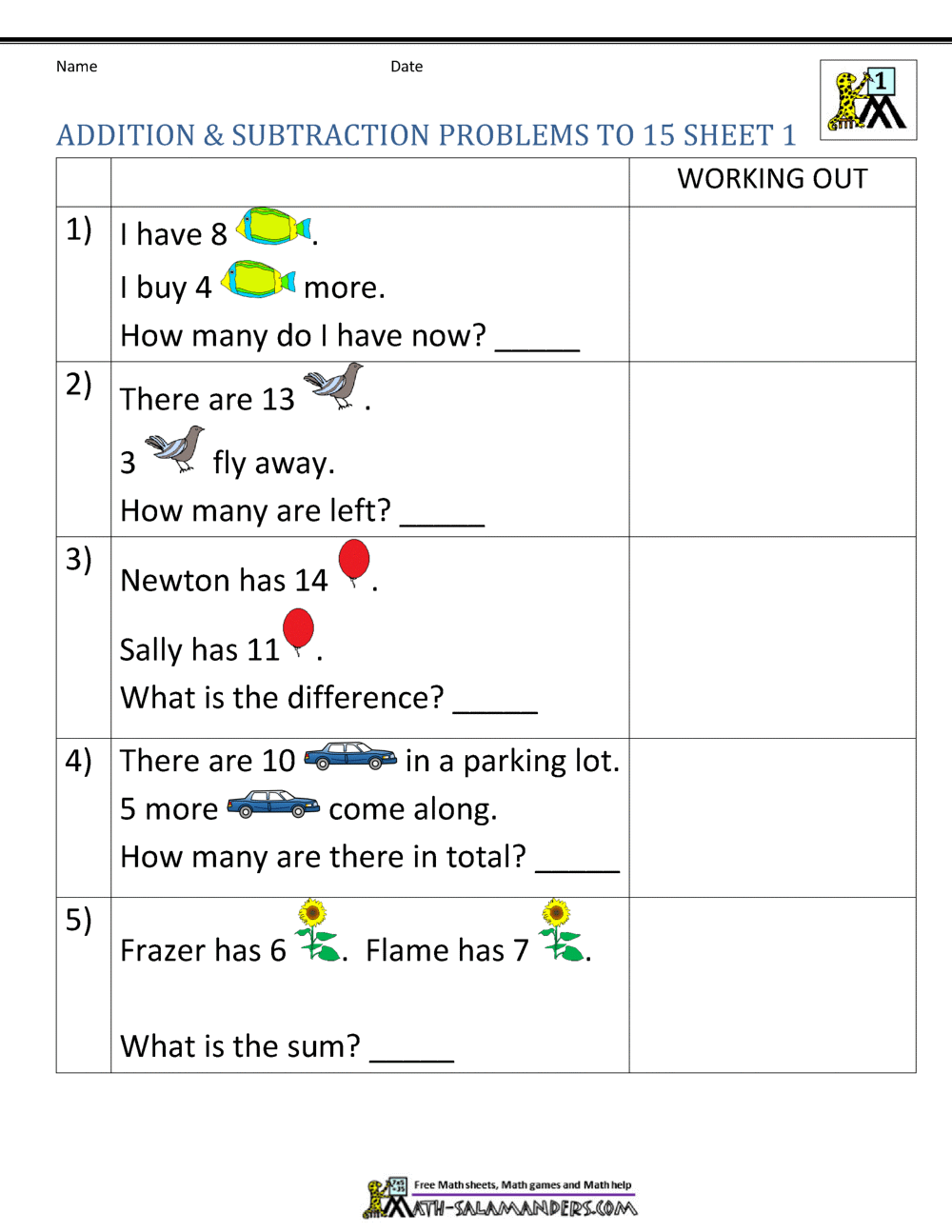 Addition And Subtraction Word Problems Grade 1 Worksheets