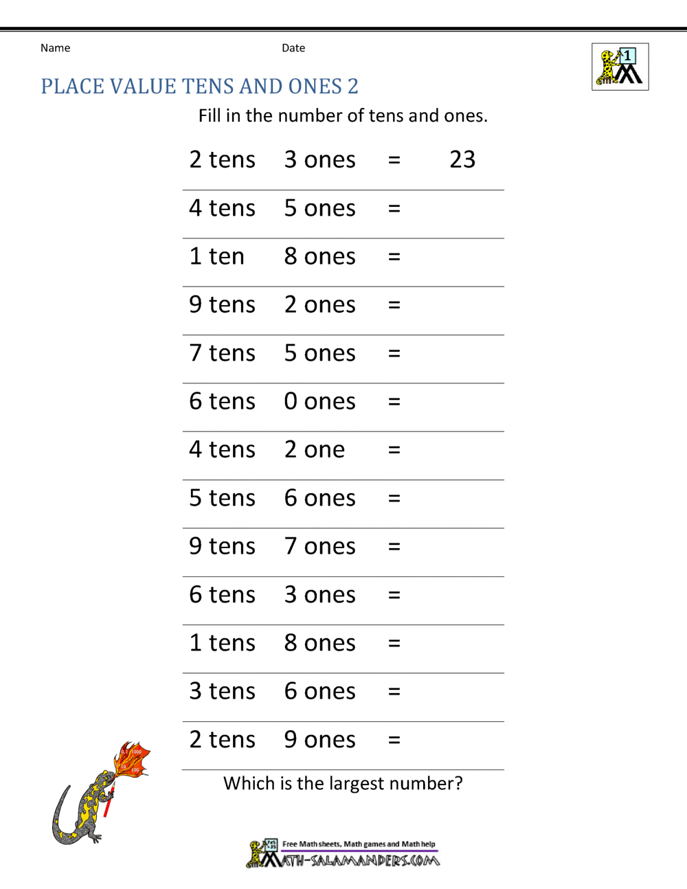 Tens And Ones First Grade Worksheets
