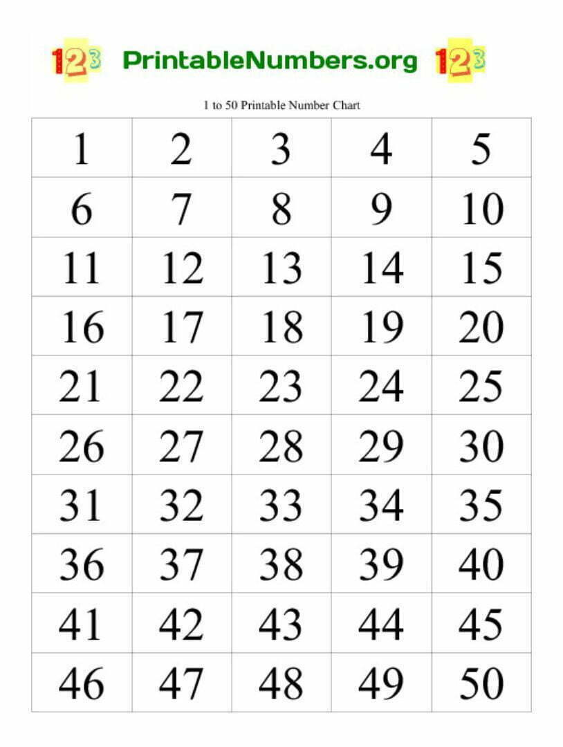 Number Line 1-50 Worksheets