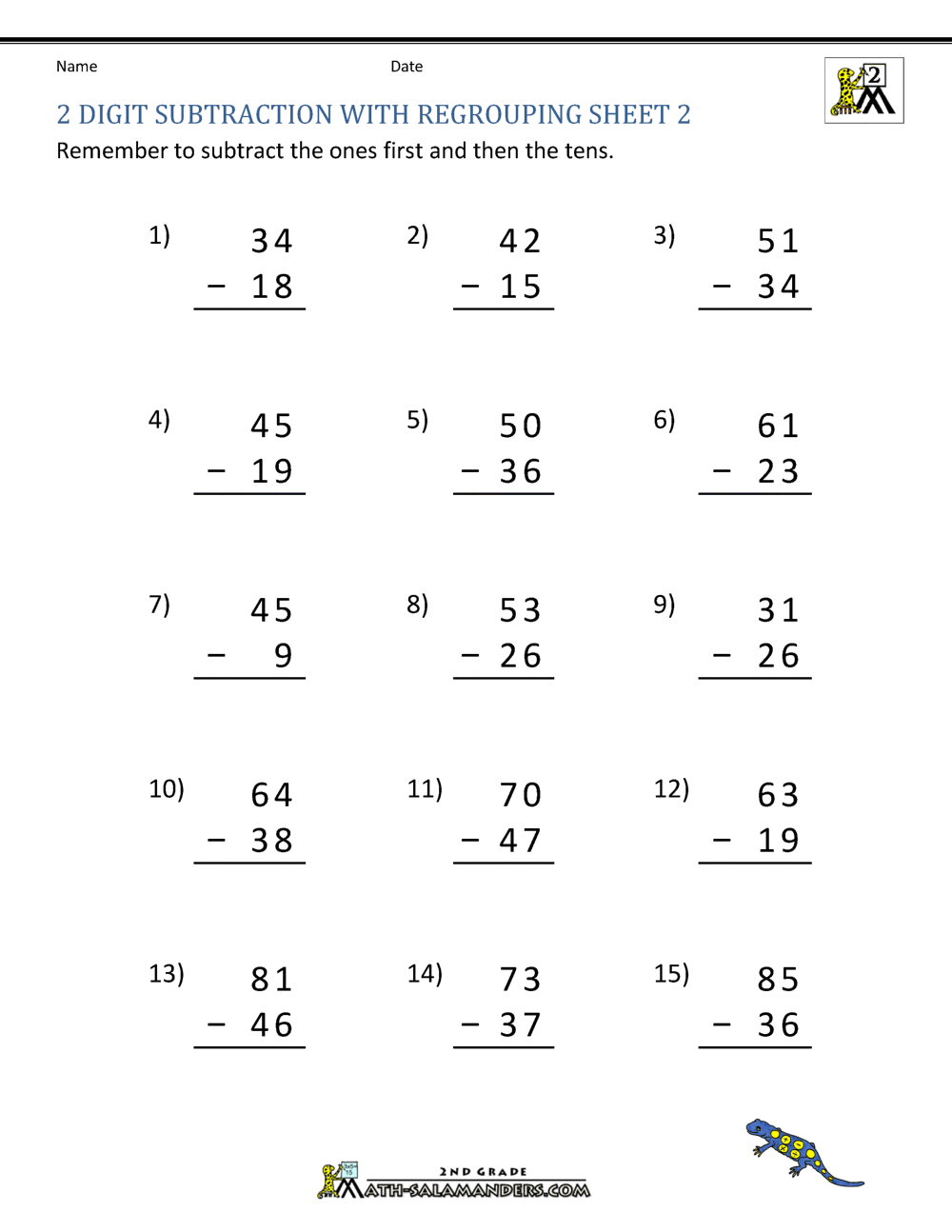 Subtract 2 Digit Numbers With Regrouping Worksheets