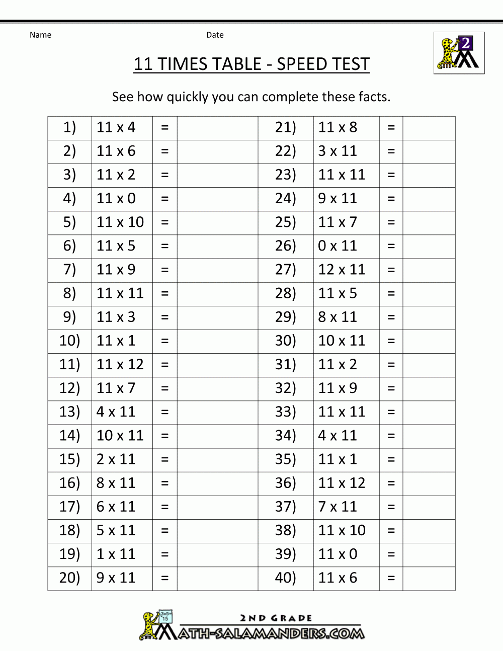 Time Table 1 To 12 Worksheets