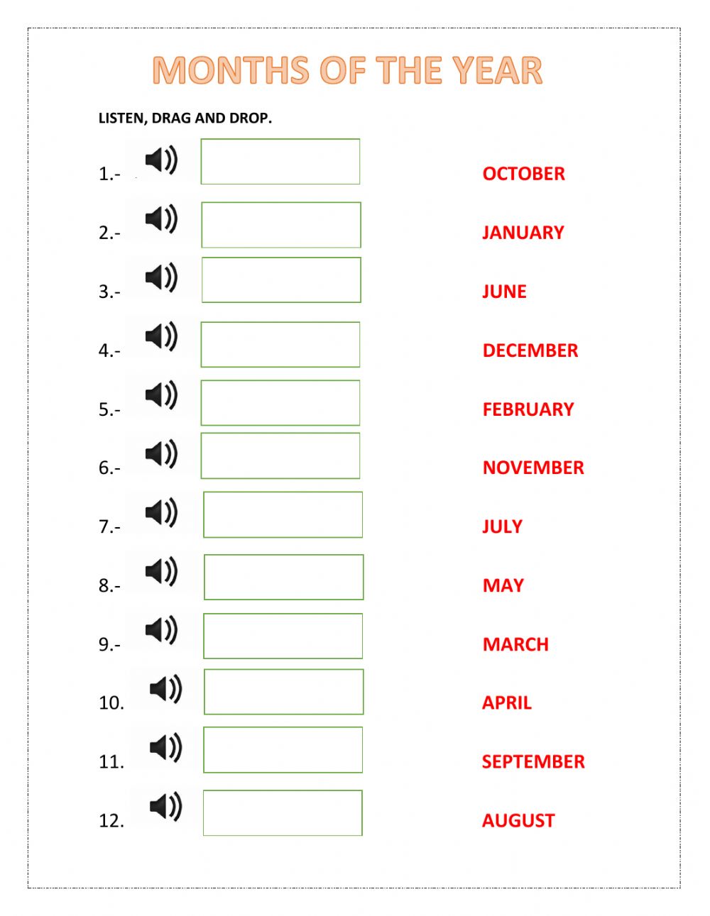 Months Of The Year Numbered Worksheets