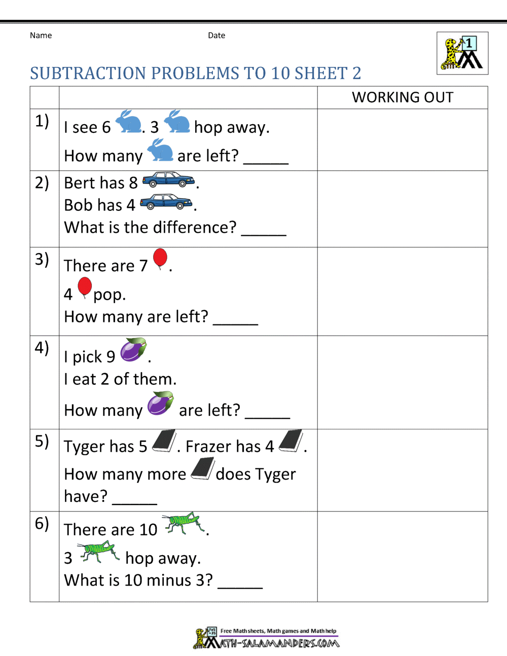 Subtraction Word Problems Grade 1 Worksheets