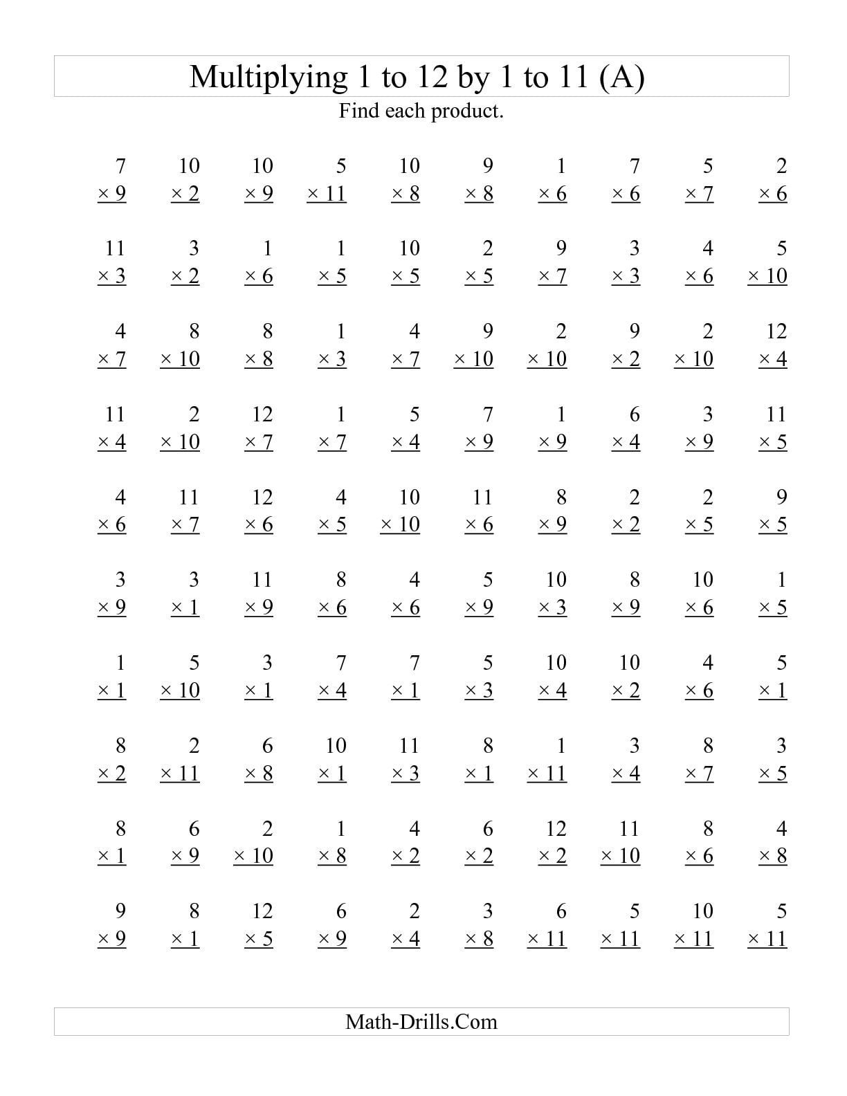 Multiplication Facts 1-12 Printable Worksheets