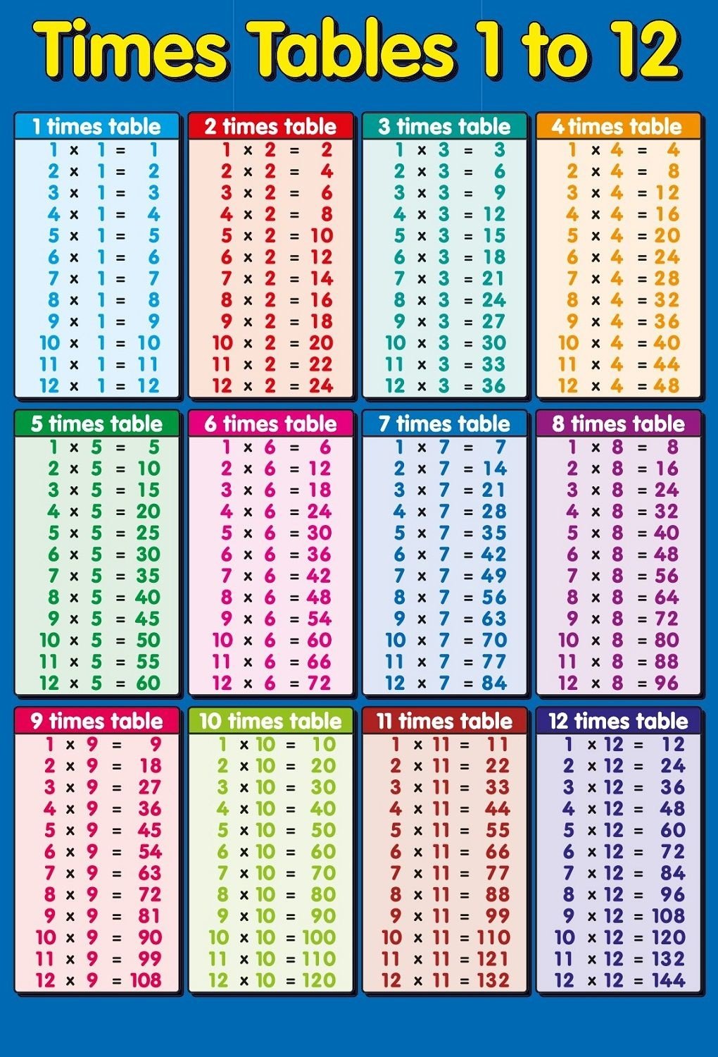 Times Table Chart Worksheets