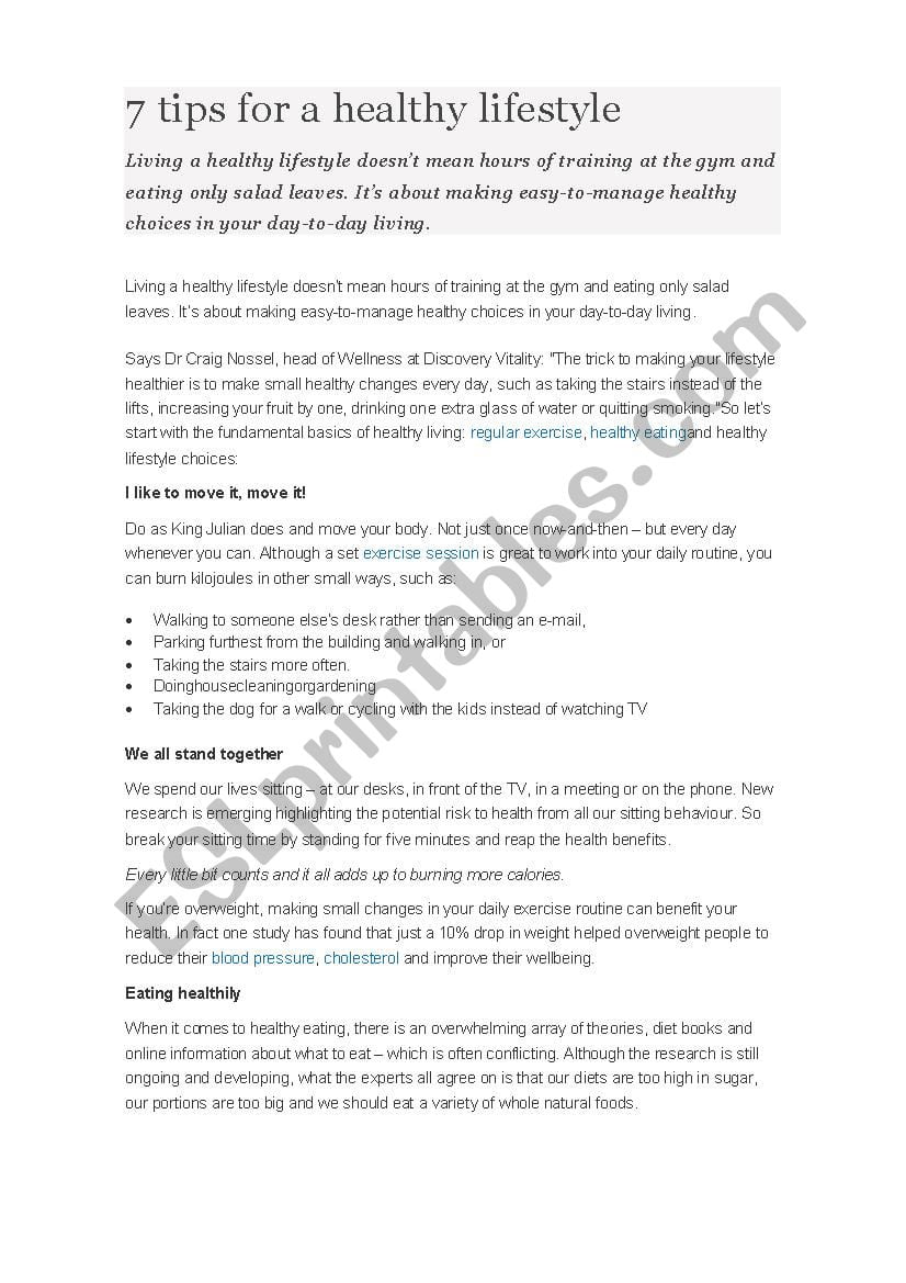 Walking Health And Fitness Reading Comprehension Worksheets