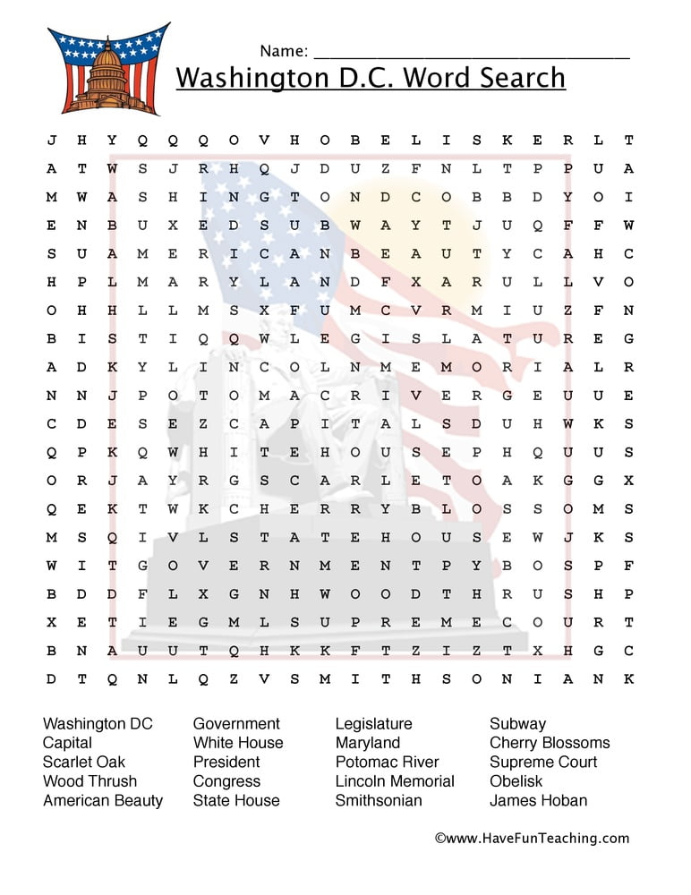 Maryland Word Search Worksheets